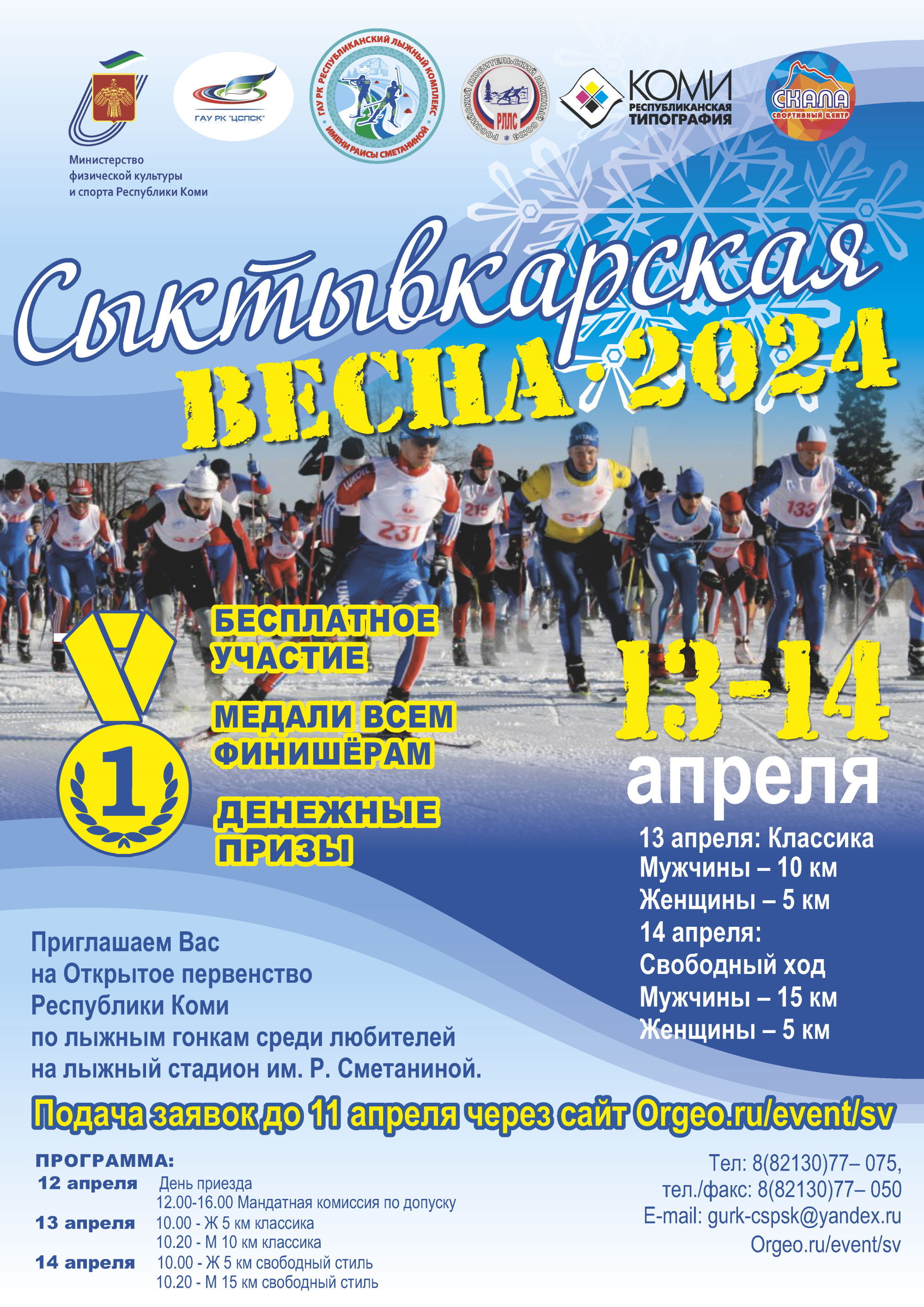 Открытое Первенство Республики Коми по лыжным гонкам среди любителей. Классика и свободный ход. Бесплатное участие, медали всем финишерам, денежные призы победителям! Внимание - обязательны медицинские справки и страховка