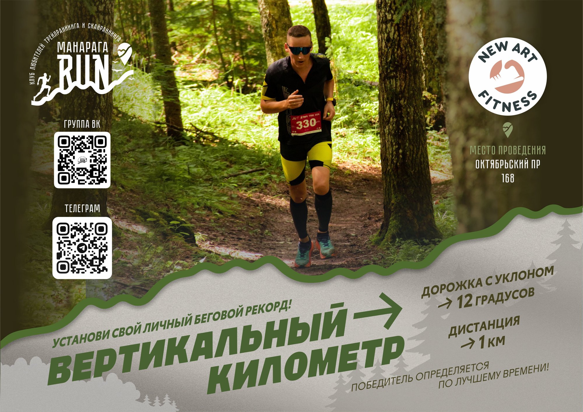 Команда «МанарагаRUN» и фитнес-центр New Art Fitness проводят для Вас открытое соревнование «Вертикальный километр». Приходите в фитнес-центр New Art Fitness с беговой экипировкой, пройдите инструктаж и покажите всё, на что Вы способны! Участие – совершенно БЕСПЛАТНО!!!